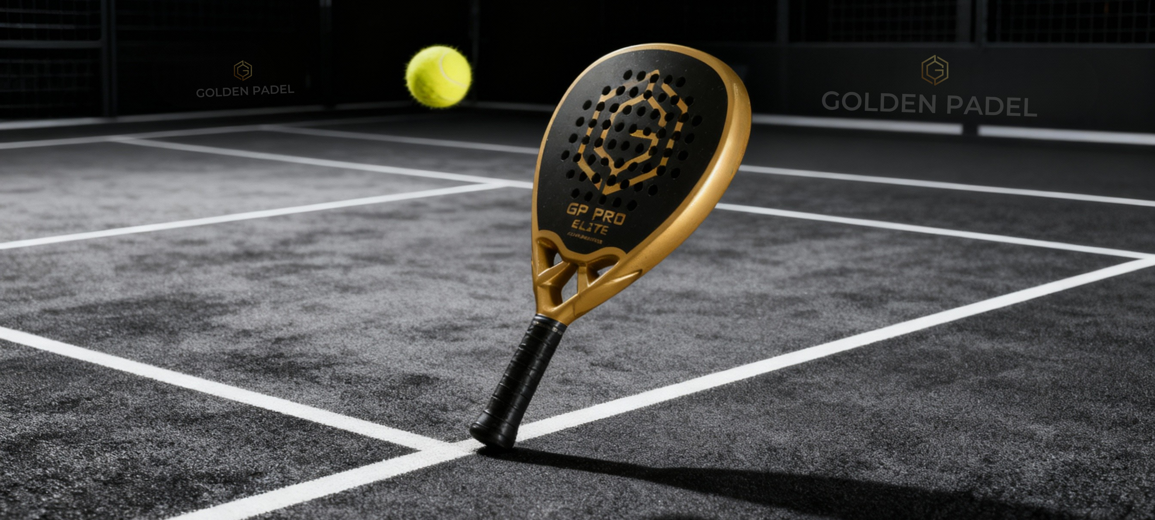 The GP Pro Elite stands out with its striking black-and-gold look, featuring a bold hexagon-patterned 3D carbon fibre face in a matte finish and gleaming gold details on the sides and top.